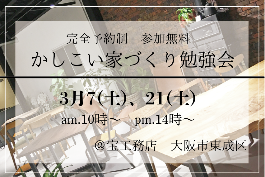 - 3/7日、21日(土)かしこい家づくり勉強会@宝工務店【参加無料】